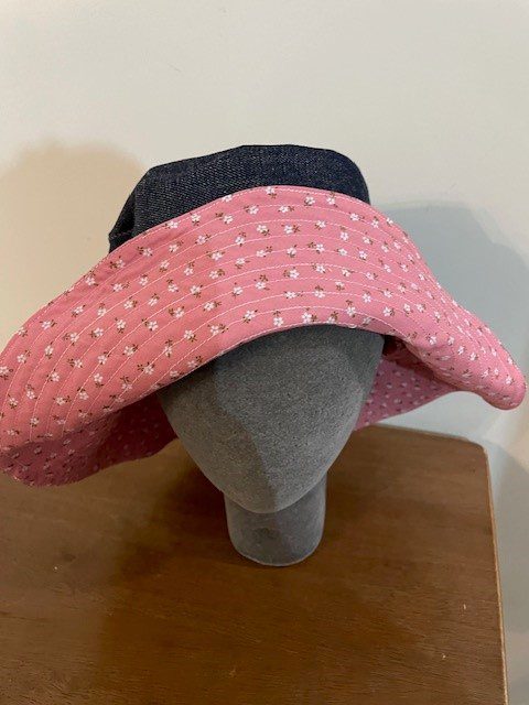 Ditsy Pink Flower & Denim reversible bucket hat – LGF