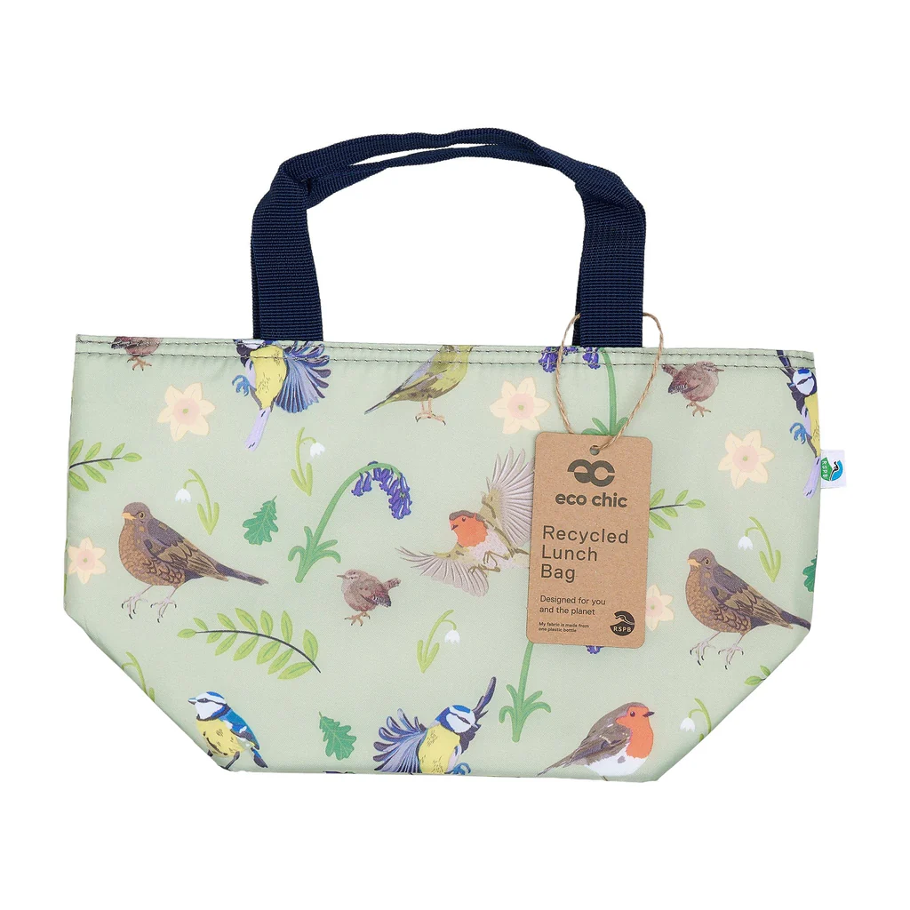 Garden Birds – Black – Eco Chic Foldable Lunch Bag