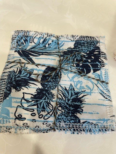 hemp leaf/pineapple design – washable, re-usable bamboo face wipes x 4