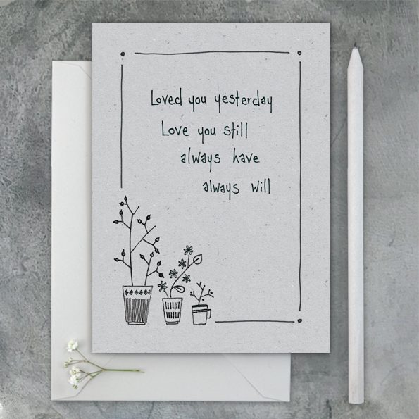 - wording on front reads ‘ Loved you yesterday, love you still, always have always will’