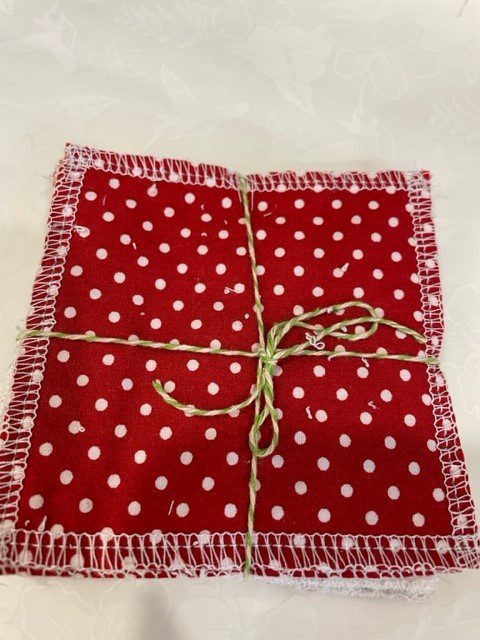 red spot/red paisley design – washable, re-usable bamboo face wipes x 4