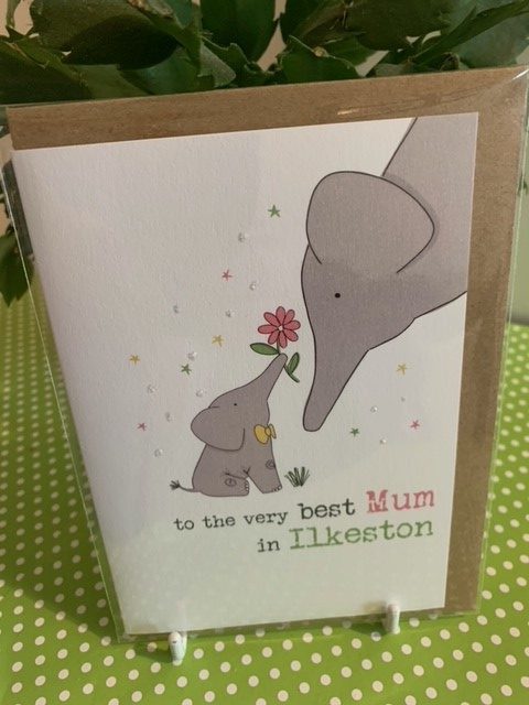 to the very best Mum in Ilkeston – (elephant) – Dandelion Stationery card