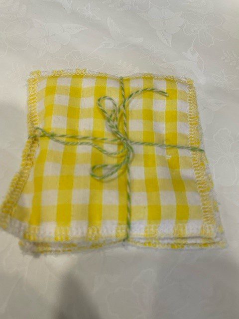 Yellow Gingham Check design – washable, re-usable bamboo face wipes x 4